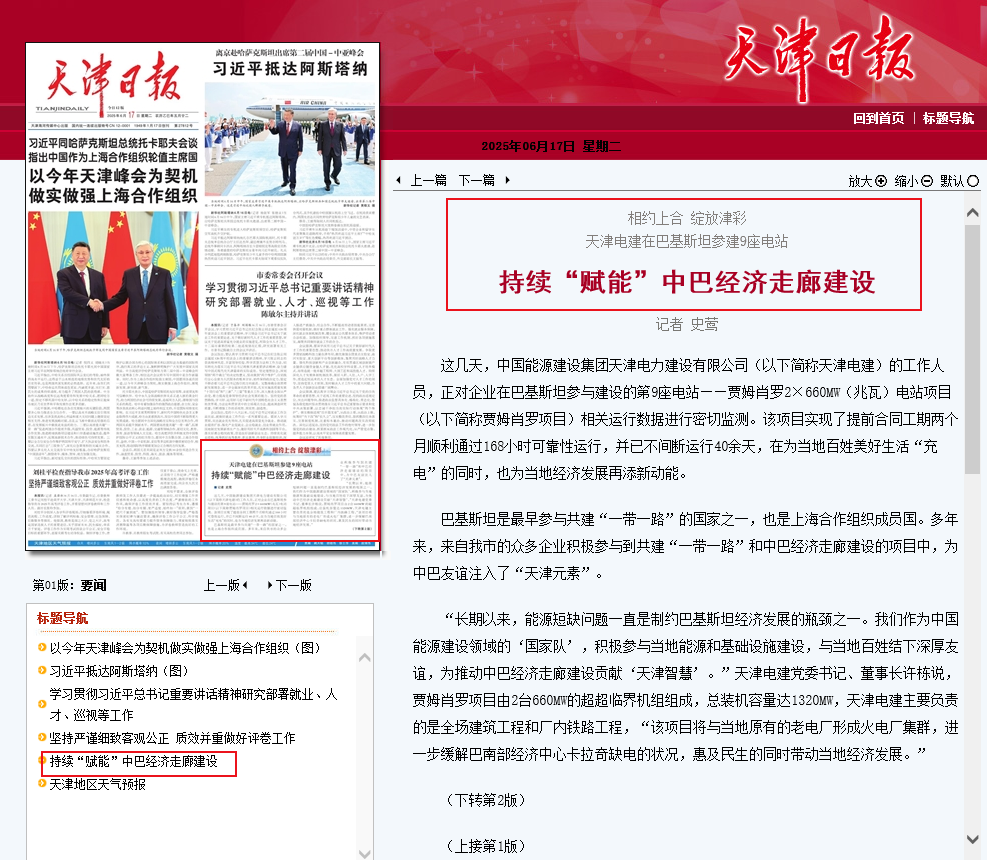 創(chuàng)新土建關(guān)鍵工藝、優(yōu)化設(shè)計(jì)方案、攻克施工難關(guān)……天津電建不僅為賈姆肖羅項(xiàng)目的順利推進(jìn)與高質(zhì)量完成發(fā)揮關(guān)鍵作用,更為中巴兩國(guó)的能源合作與友誼搭建更堅(jiān)實(shí)的橋梁。許棟表示:“我們將立足傳統(tǒng)電力、新能源和非電領(lǐng)域核心優(yōu)勢(shì),緊抓全球能源轉(zhuǎn)型、產(chǎn)業(yè)升級(jí)及‘一帶一路’高質(zhì)量發(fā)展機(jī)遇,持續(xù)拓展海外特別是上合組織國(guó)家等市場(chǎng),形成布局優(yōu)化、模式升級(jí)、資源整合與綠色賦能相結(jié)合的國(guó)際化發(fā)展路徑,為推動(dòng)務(wù)實(shí)合作、構(gòu)建更加緊密的上合組織命運(yùn)共同體貢獻(xiàn)駐津央企力量。”