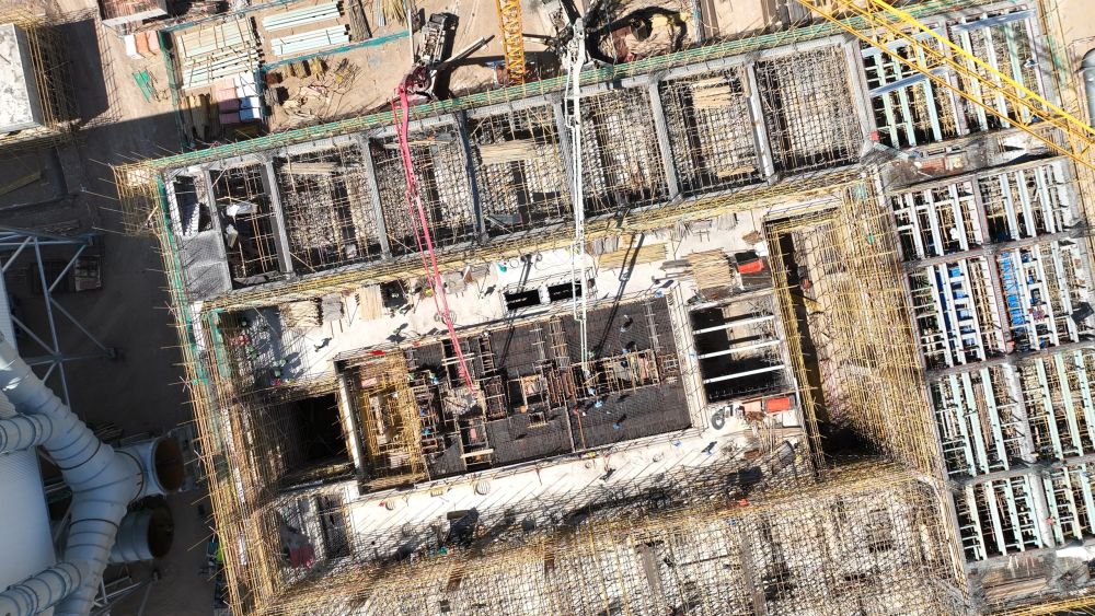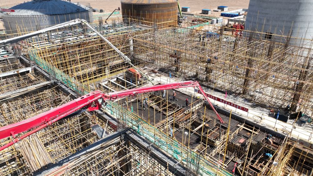 記者采訪獲悉,該項目由中國能源建設(shè)集團(tuán)投資有限公司投資建設(shè),于2024年5月開工,計劃2027年6月完工。本次澆筑的汽輪機基礎(chǔ)是光熱電站核心結(jié)構(gòu),投運后需承載數(shù)千噸設(shè)備重量及高頻振動荷載。本次澆筑混凝土方量600立方米,屬于大體積混凝土澆筑,基礎(chǔ)需嵌入大量預(yù)埋件、螺栓孔,施工精度直接影響設(shè)備安裝定位,施工已于7月16日完成。項目地處哈密市巴里坤哈薩克自治縣的一處戈壁上,建設(shè)環(huán)境惡劣,氣候變化大,交通不便,生產(chǎn)生活物資供給困難,年施工窗口期僅7個月。經(jīng)過克服風(fēng)沙侵襲、嚴(yán)寒酷暑等多重考驗,歷時數(shù)月的精細(xì)籌備,目前施工正按計劃穩(wěn)步推進(jìn),整體工程有序鋪開。